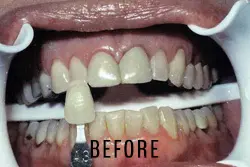 A veneer is a thin layer of lab-processed porcelain that covers the fronts of a tooth’s surface. This is a treatment option that requires less tooth preparation than a traditional crown. Veneers are used to create a more aesthetically pleasing smile by changing the alignment of teeth, closing spaces, or lengthening teeth.